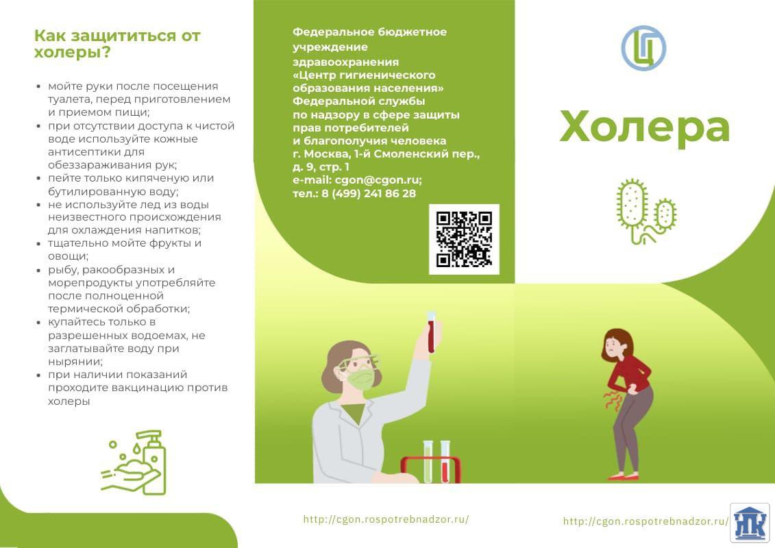 В соответствии с письмом Министерства здравоохранения Пермского края от 26.03.2026 г. № 34-01-13-1563-исх «О предоставлении информации по вопросам профилактики холеры» просим вас ознакомиться с материалами о мерах профилактики холеры. |