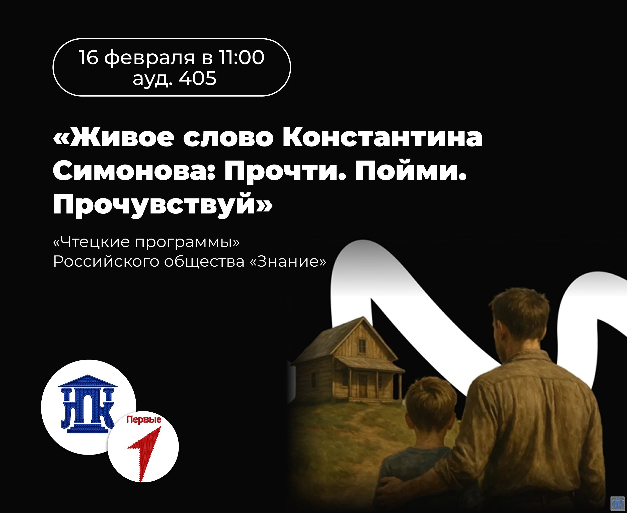 16 февраля в 11:00 (корпус 2, каб. 405) стартует проект «Чтецкие программы» от Российского общества «Знание». Встреча будет посвящена поэзии Константина Симонова. |