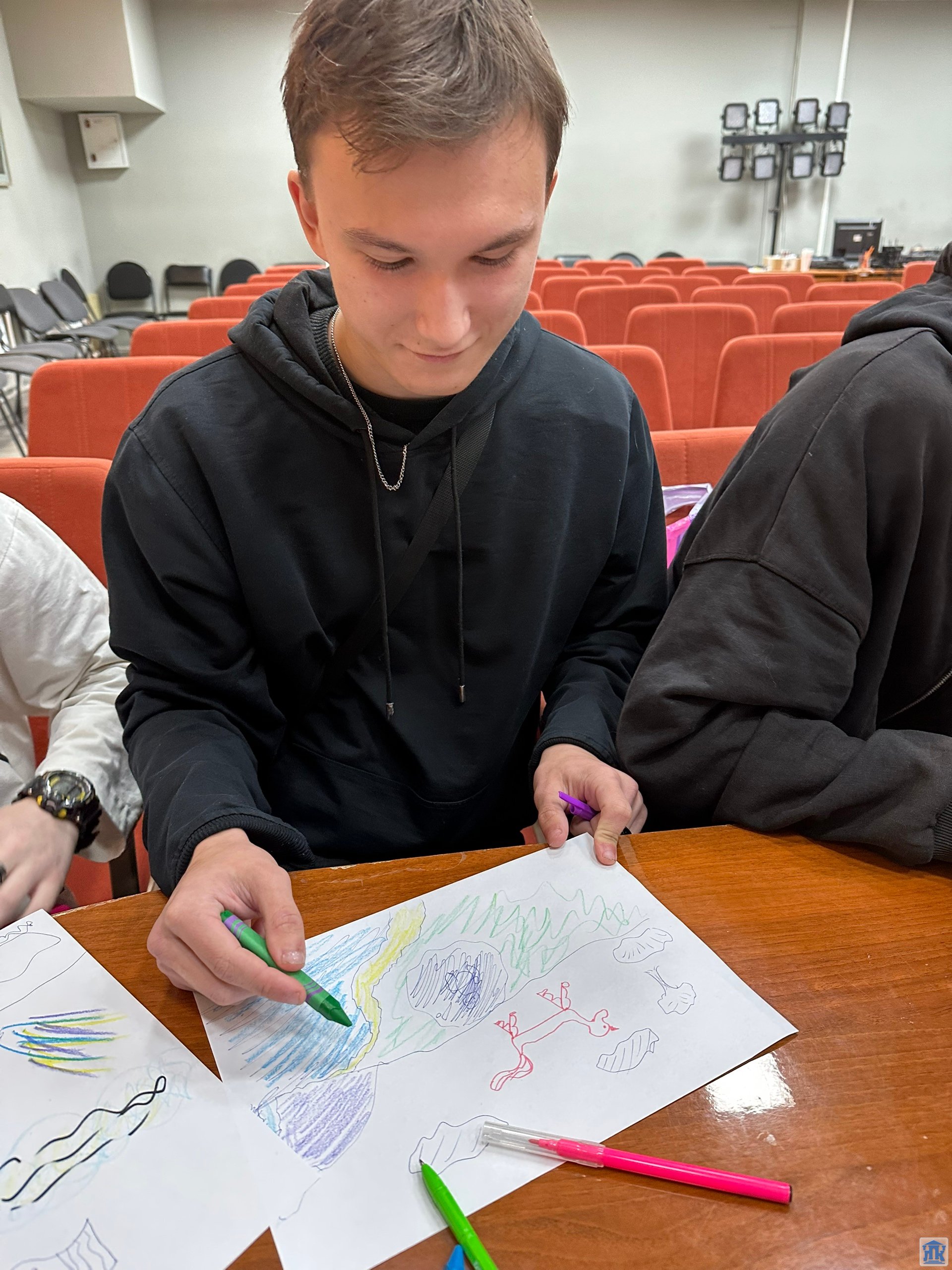 Важной частью встречи стало внимание к внутреннему голосу — студенты рисовали свои источники вдохновения. Мы понимаем, что настоящий лидер и активист должен быть в ресурсе, чтобы вдохновлять и поддерживать других.