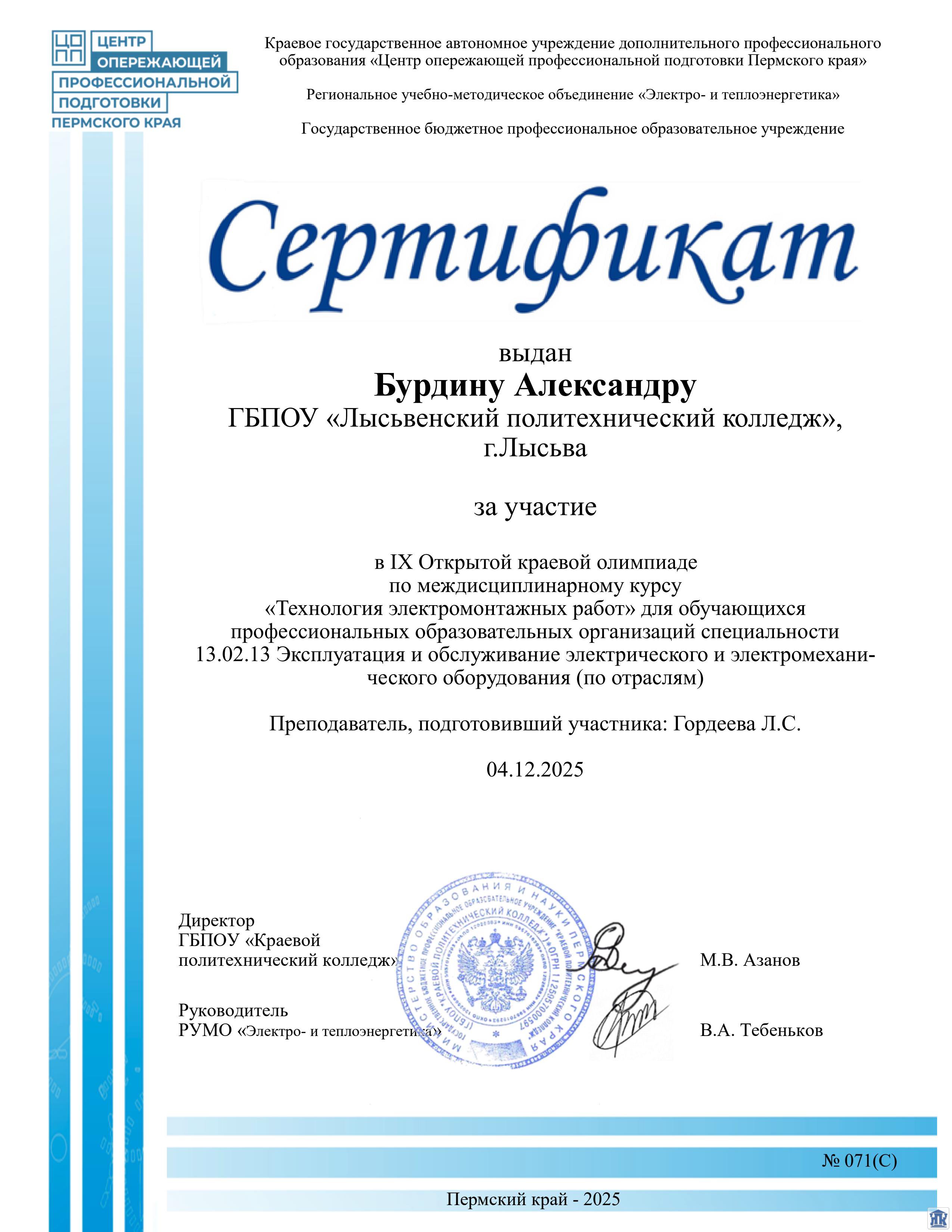 4 декабря среди студентов-электриков Пермского края прошла IX Открытая краевая олимпиада по междисциплинарному курсу «Технология электромонтажных работ».