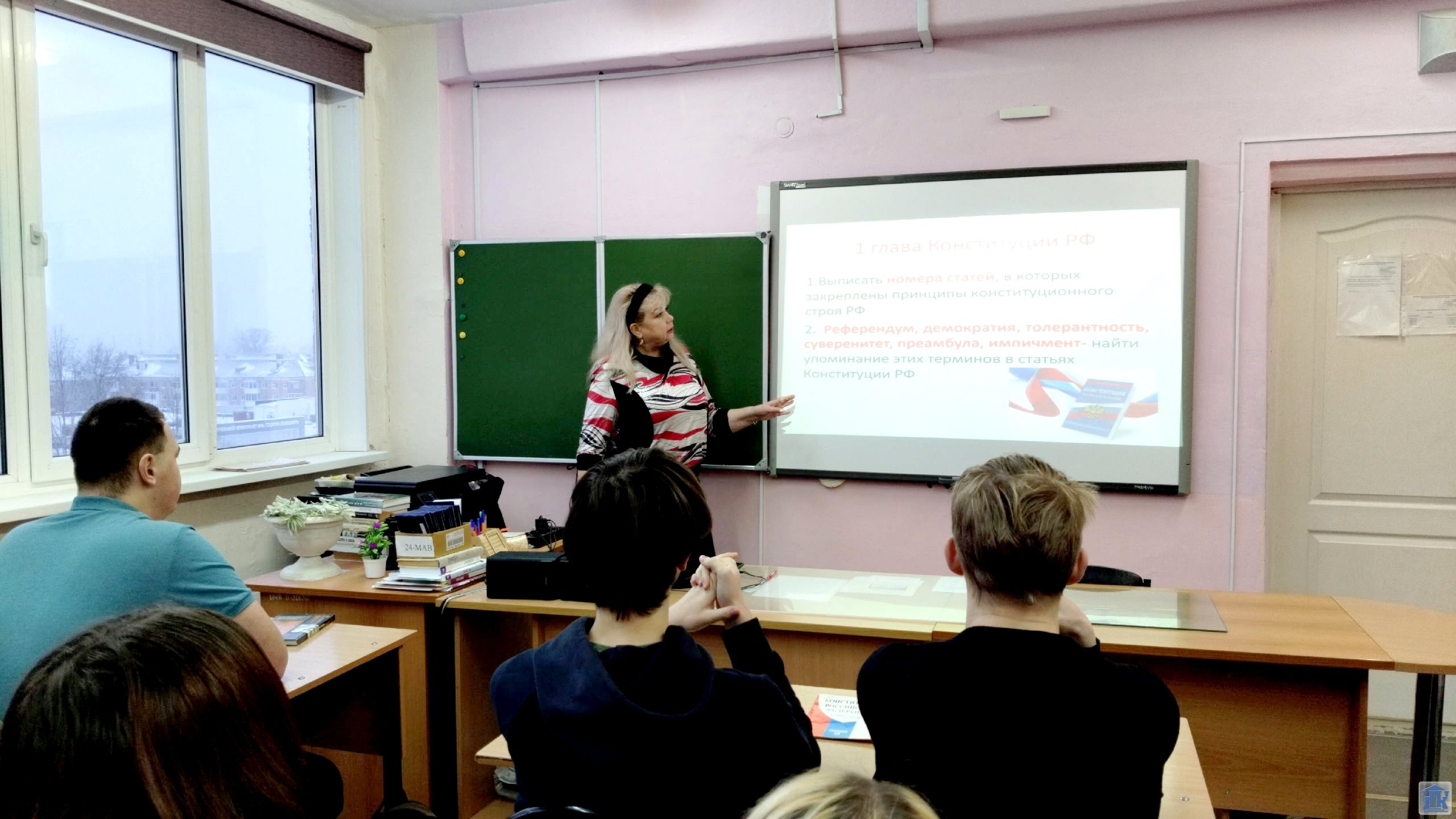 Кульминацией уроков стал конкурс на лучшего знатока конституционных терминов. Студентам предстояло сопоставить лексическое значение с самим термином, а затем найти упоминание этих терминов в статьях Конституции РФ. В карточках были представлены такие важные понятия, как: референдум, демократия, толерантность, суверенитет, преамбула, импичмент.