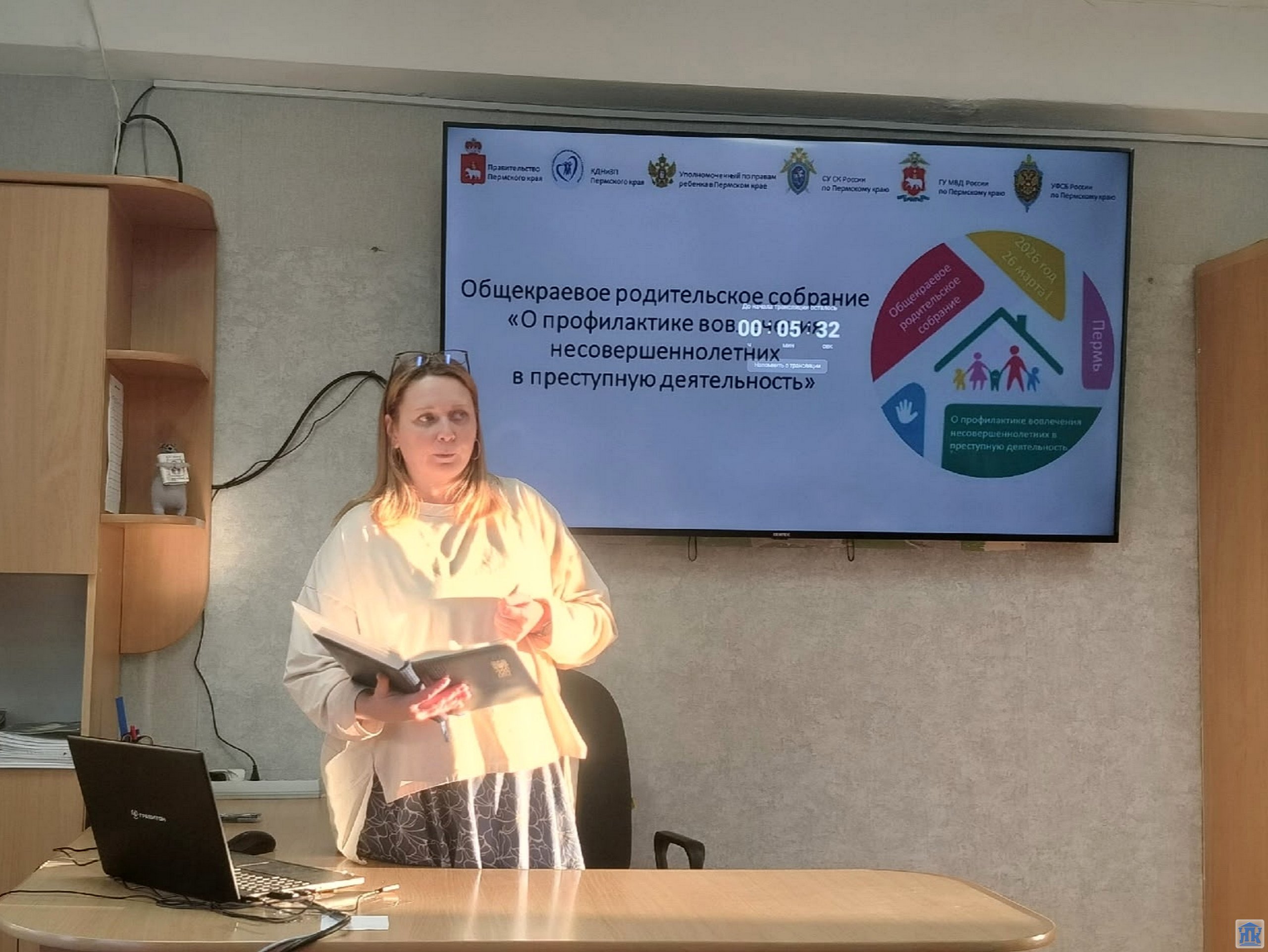 Модератором общекраевого родительского собрания выступила Светлана Анатольевна Денисова, Уполномоченный по правам ребенка в Пермском крае. Отрывки из фильма "Предательство" заставили родителей задуматься, что тема актуальна и страшна.